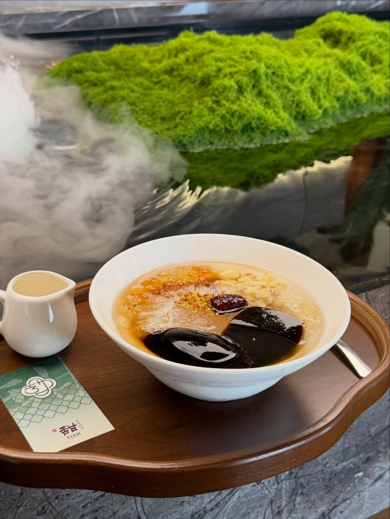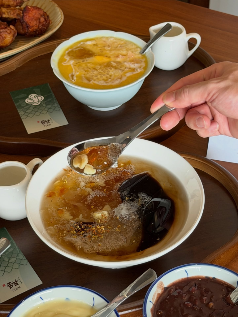 据了解,TIEN以潮州式糖水为核心,提供多款经典甜品选择,包括花生糊、黑芝麻糊及桃胶糖水等,延续传统制作方式,同时在口感与甜度上进行调整,以迎合现代消费者偏好。整体甜品风格强调“不过甜、顺口”,兼顾健康与风味。