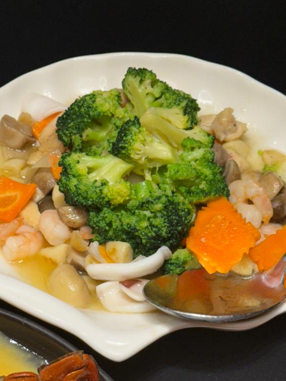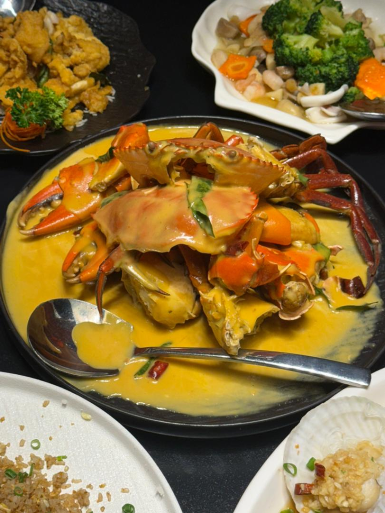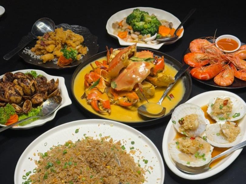 根据餐厅资料,该配套以海鲜料理为主,适合多人共享。其中包括螃蟹、咸蛋鱿鱼、甘香啦啦、蒜蓉粉丝扇贝、海鲜杂菜及主食炒饭等组合。螃蟹为配套重点之一,顾客亦可选择额外加价升级至更大尺寸。
