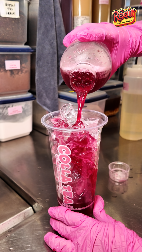 在产品方面,店内提供多款特色饮品,包括经典的Collagen Thai Milk Tea,以及主打清爽风味的Acai Collagen,口感酸甜并带有回甘。此外,还有融合乳制品与水果风味的Hokkaido Strawberry Cheese,以及口感较为顺滑的Purple Potato Milk等选项,满足不同消费者的喜好。